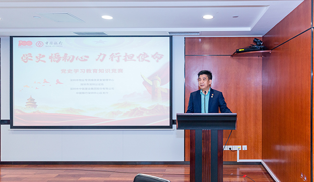 活動(dòng)伊始,中裝建設(shè)副總裁黎文崇同志在致辭中強(qiáng)調(diào),此次黨史競(jìng)賽活動(dòng),既是貫徹落實(shí)黨中央黨史學(xué)習(xí)教育決策部署的一次具體行動(dòng),也是中裝建設(shè)與中國(guó)銀行深圳中心區(qū)支行、深圳市物業(yè)專(zhuān)項(xiàng)維修資金管理中心、深圳市公證書(shū)等參賽單位構(gòu)建“黨建同心圓”的一次嘗試,有效促進(jìn)了彼此的溝通交流。希望中裝建設(shè)以此次活動(dòng)為契機(jī),進(jìn)一步加深與中國(guó)銀行深圳中心區(qū)支行、物業(yè)專(zhuān)項(xiàng)維修資金管理中心以及市深圳公證處的合作,共同推動(dòng)黨建和事業(yè)邁上新的臺(tái)階,以?xún)?yōu)異的成績(jī)慶祝建黨100 周年。