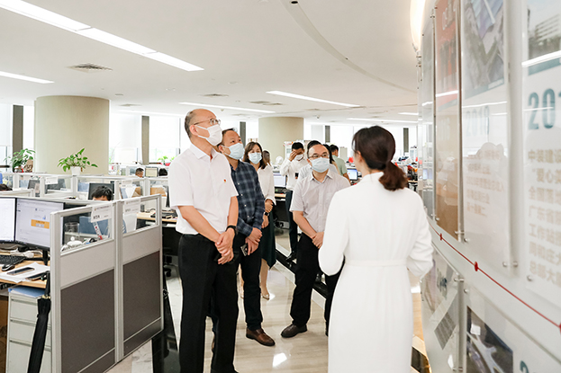 6月2日上午,羅湖區(qū)住房和建設(shè)局局長馬曉東、羅湖區(qū)企業(yè)服務(wù)中心主任陳曉軍等相關(guān)單位一行蒞臨中裝建設(shè)調(diào)研考察。本次調(diào)研特邀中國建筑裝飾協(xié)會學(xué)術(shù)與教育委員會秘書長朱時鈞出席,并圍繞“中裝杯”全國大學(xué)生環(huán)境設(shè)計大賽,聚焦羅湖區(qū)數(shù)字創(chuàng)意產(chǎn)業(yè)及發(fā)展態(tài)勢,對當(dāng)下羅湖區(qū)數(shù)字創(chuàng)意產(chǎn)業(yè)發(fā)展利好進(jìn)行了交流探討。中裝建設(shè)董事長莊重、輪值總裁兼財務(wù)總監(jiān)曾凡偉、副總裁黎文崇、黨委書記莊國鏟等陪同調(diào)研。
