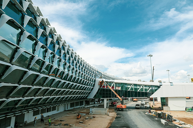 深圳機(jī)場衛(wèi)星廳及其配套工程項(xiàng)目,項(xiàng)目整體采用“X”型蝠鲼構(gòu)造設(shè)計(jì),與在營深圳機(jī)場T3航站樓交相呼應(yīng),集行李捷運(yùn)、旅客航運(yùn)、貨物集散等多功能于一體,計(jì)劃年底交付使用,屆時(shí)可滿足2200萬人次使用需求,為打造灣區(qū)國際空港,一流航空樞紐,全球貨物集散中心奠定堅(jiān)實(shí)基礎(chǔ)。深圳機(jī)場衛(wèi)星廳啟用后將對提升機(jī)場服務(wù)保障供給能力,增強(qiáng)機(jī)場在“雙區(qū)”建設(shè)和民航高質(zhì)量發(fā)展中的硬實(shí)力、競爭力具有重要意義。