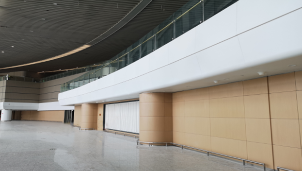 中裝建設(shè)負(fù)責(zé)整體航站樓的內(nèi)部精裝項(xiàng)目,精裝建筑面積約為7萬(wàn)平方米。項(xiàng)目于2018年4月10日進(jìn)場(chǎng)正式開(kāi)工,2020年6月22日竣工驗(yàn)收。經(jīng)過(guò)一年多的測(cè)試檢驗(yàn),將于2021年8月12日正式通航。中裝建設(shè)施工范圍從施工內(nèi)容涵蓋從F區(qū)L1層、L2層、負(fù)一層的國(guó)內(nèi)、國(guó)際行李提取大廳、行李查詢(xún)及大件行李托運(yùn)區(qū)以及國(guó)內(nèi)、國(guó)際迎賓大廳及5個(gè)航站進(jìn)出門(mén)斗、其中包含20個(gè)公共衛(wèi)生間、殘疾人衛(wèi)生間和12個(gè)嬰兒護(hù)理室等多項(xiàng)公共區(qū)域。