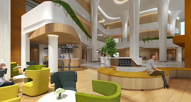 合肥離子醫(yī)院中心是合肥綜合性國家科學(xué)中心七大創(chuàng)新平臺之一,位于合肥高新區(qū)燕子河路與長寧大道交口,總建筑面積約3.3萬平方米。在本案設(shè)計中,中裝建設(shè)以患者為中心,以“水”為主題,通過曲線空間帶來舒緩的氛圍,營造一所集家具、庭園、社區(qū)于一體的且兼顧私密性的健康中心。此外,公司通過運(yùn)用BIM技術(shù),使抽象化的施工更加簡單化、更加直觀化、更加高效。