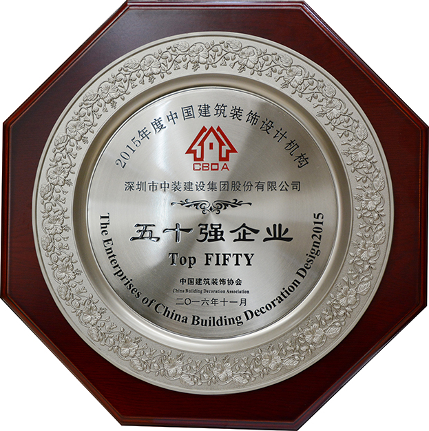 2014年,深圳市中裝建設(shè)集團(tuán)股份有限公司在深圳市室內(nèi)設(shè)計(jì)師協(xié)會(huì)十周年慶典活動(dòng)中獲評(píng)為“深圳建筑裝飾設(shè)計(jì)十年功勛企業(yè)”; 2015年,公司中國(guó)建筑裝飾協(xié)會(huì) “2014年度中國(guó)建筑裝飾設(shè)計(jì)機(jī)構(gòu)五十強(qiáng)” 評(píng)選中排名第26位。 中裝設(shè)計(jì)為鑄就“中裝”品牌,推動(dòng)深圳“設(shè)計(jì)之都”建設(shè),促進(jìn)建筑裝飾產(chǎn)業(yè)發(fā)展做出了巨大貢獻(xiàn)。